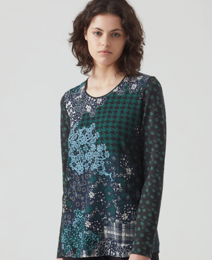 Maglietta da donna girocollo realizzata in jersey stampato di micromodal elasticizzato.
