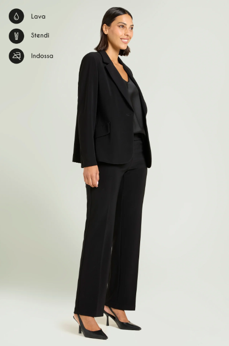 “La tua vita non è mai stata così comoda”: pratici e confortevoli, con la loro vita elasticizzata senza zip, i Pull-On di Luisa Viola sono realizzati in diversi tessuti, colori e fit. Questa versione in compatto stretch con gamba dritta è abbinabile anche a completo con giacche nello stesso tessuto.