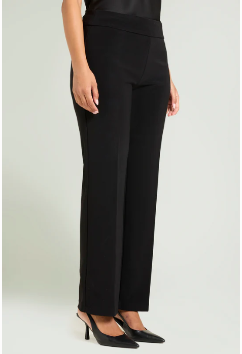 Pantaloni dalla linea dritta in tessuto compatto stretch “enver satin”, caratterizzato da un rovescio raso che dona una piacevole sensazione sulla pelle. Punto vita regolare, cintura elasticizzata, piega stirata. Costruzione Pull-On.