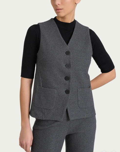 Gilet da donna con 4 bottoni e due tasche frontali applicate.