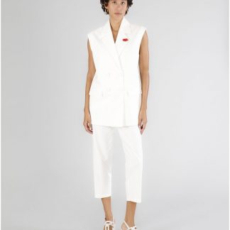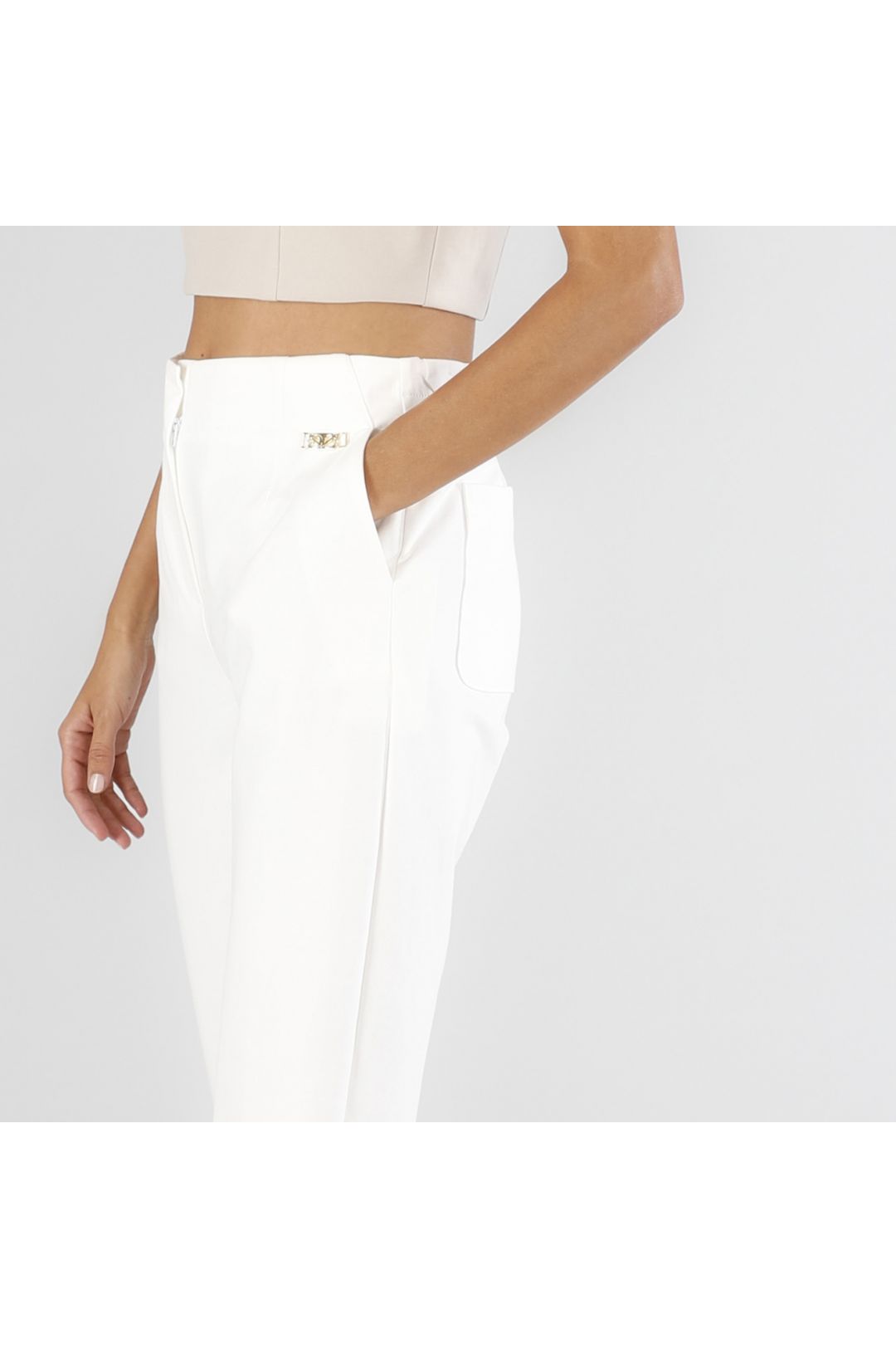 pantaloni tipo jogger tessuto elasticizzato bianco