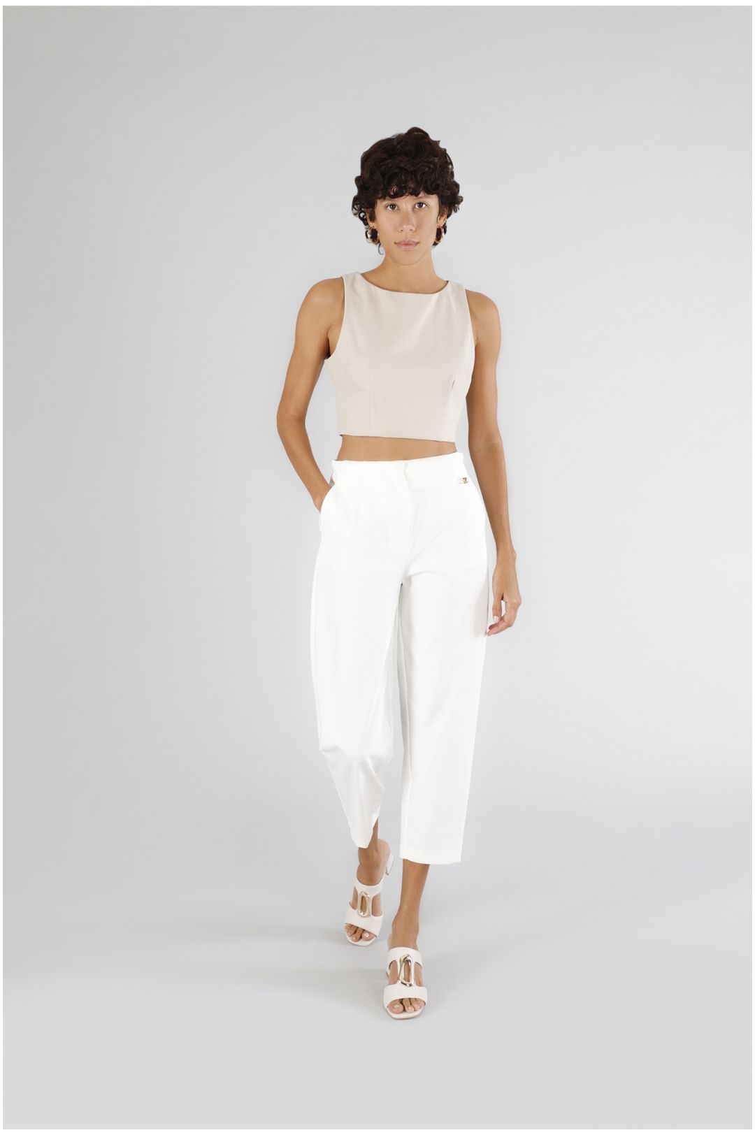 Pantaloni modello jogger con vita elasticata in tessuto elasticizzato. offrono una vestibilità confortevole e versatile. modello ideale per creare look casual chic.