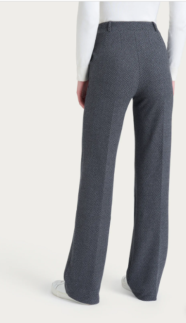 Realizzato in Eco Jacquard, un punto Milano elasticizzato che unisce la stabilità dei tessuti navetta con la flessibilità della maglia, permettendo la creazione di eleganti disegni tinto filo grazie alla tessitura jacquard.
