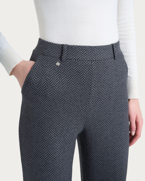 Questo modello è costruito con vita elasticizzata e senza zip, ma con pratiche tasche laterali alla francese e comodi passanti per la cintura.