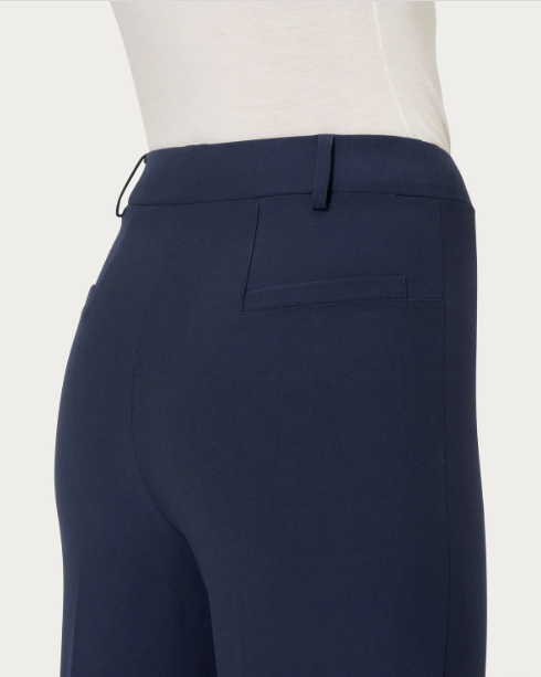 Questo modello senza tasche è costruito con vita elasticizzata ma con i passanti per la cintura per permetterti di aggiungere quel tocco di stile in più, comodo come indossare un leggings pur mantenendo l’eleganza di un pantalone. Le tasche posteriori sono finte per offrire la giusta estetica senza inficiarne la vestibilità.