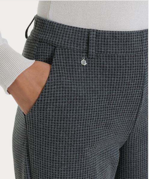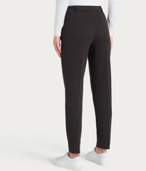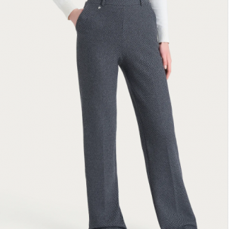 Realizzato in Eco Jacquard, un punto Milano elasticizzato che unisce la stabilità dei tessuti navetta con la flessibilità della maglia, permettendo la creazione di eleganti disegni tinto filo grazie alla tessitura jacquard.
