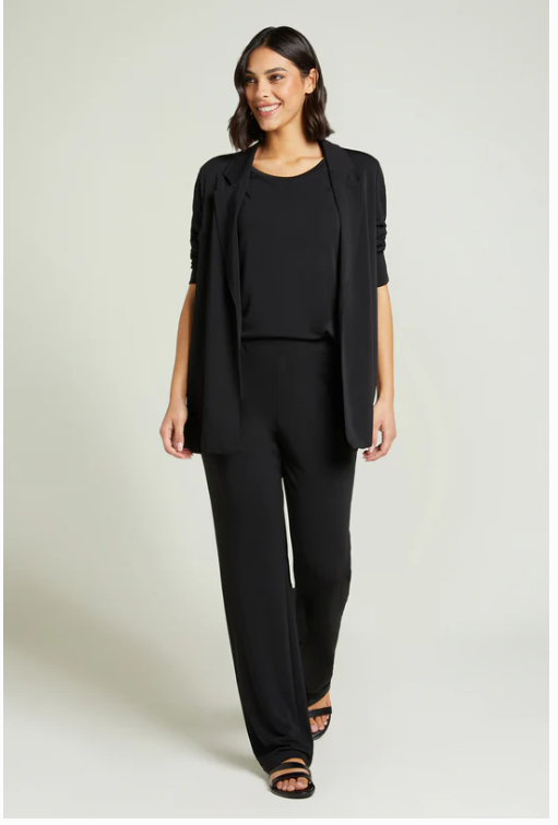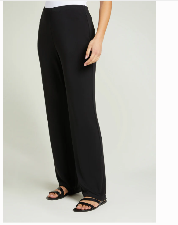 Pantaloni fluidi con gamba dritta realizzati in un jersey fluido elasticizzato dall’aspetto serico e compatto. Punto vita regolare. Cinturino estensibile con elastico inserito all’interno.