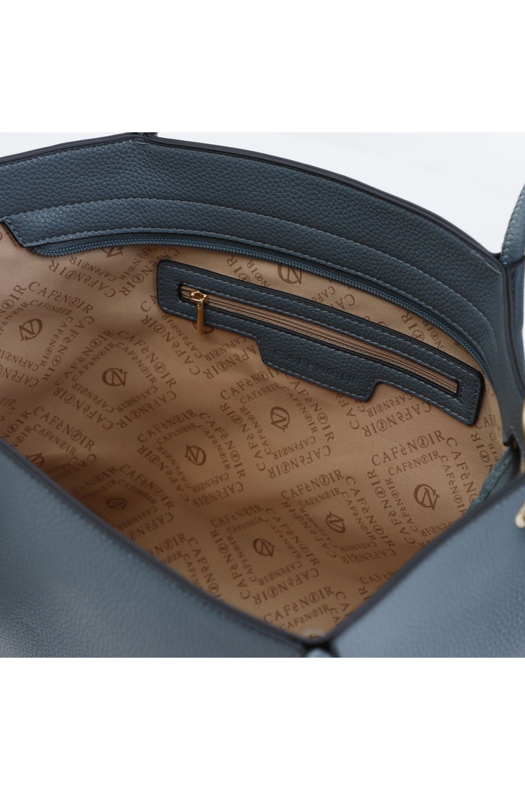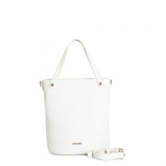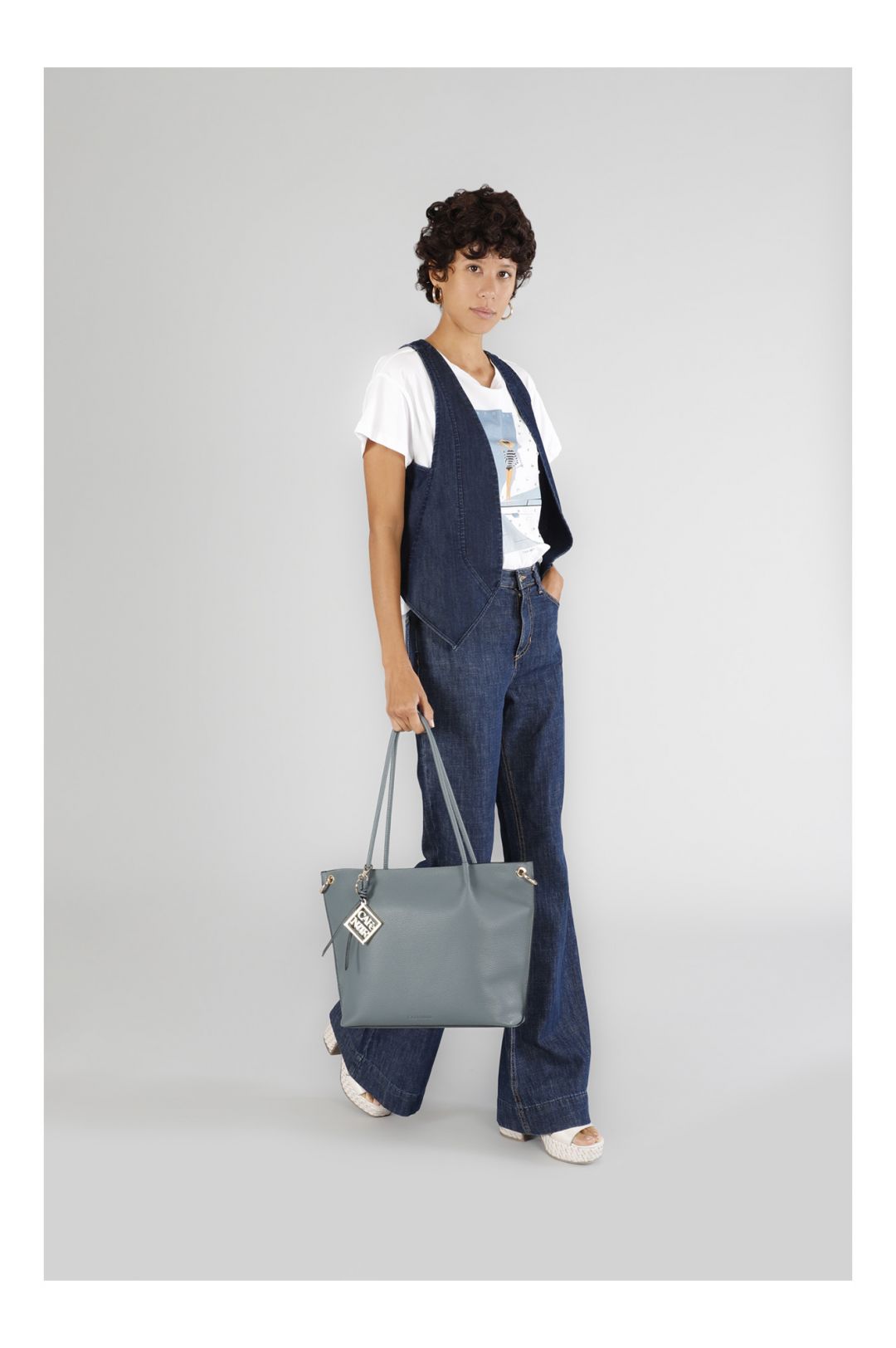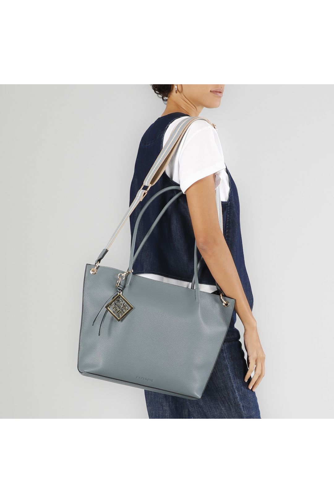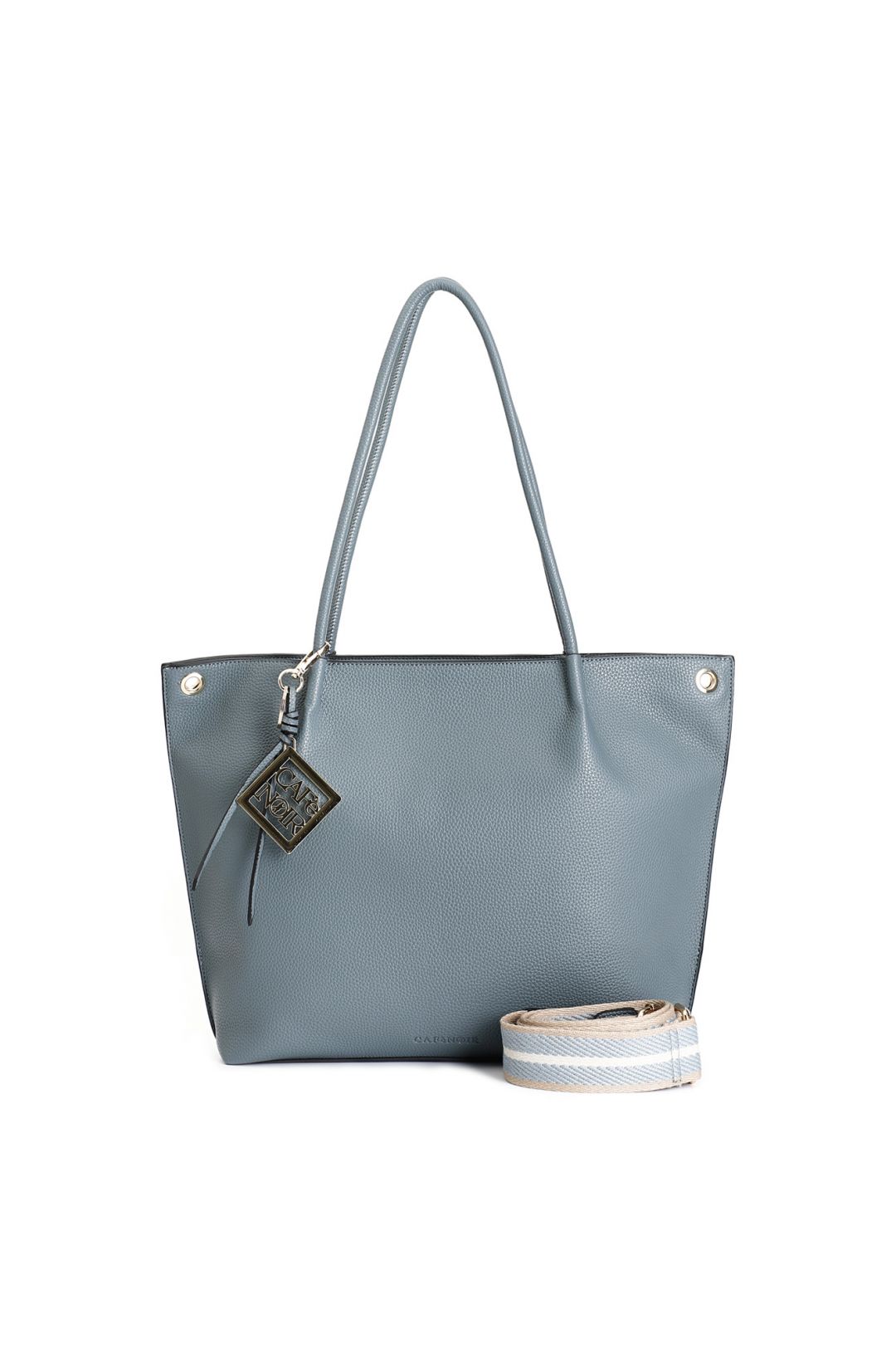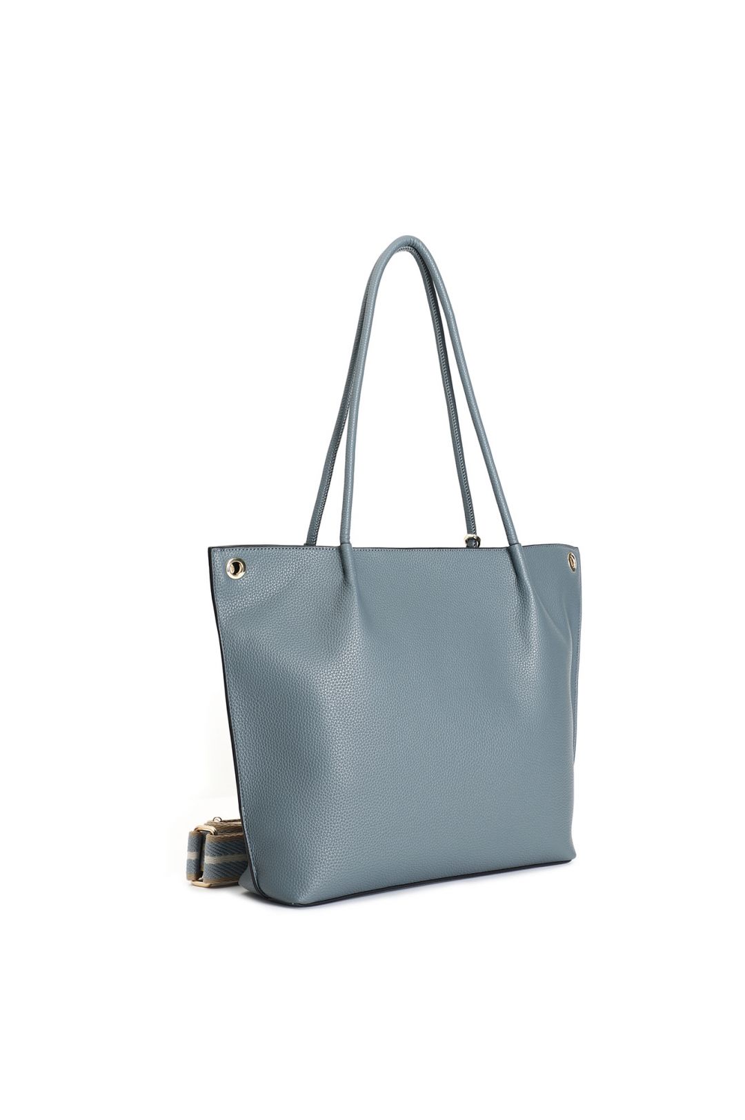 shopping bag in materiale con grana e tracolla removibile in nastro avio