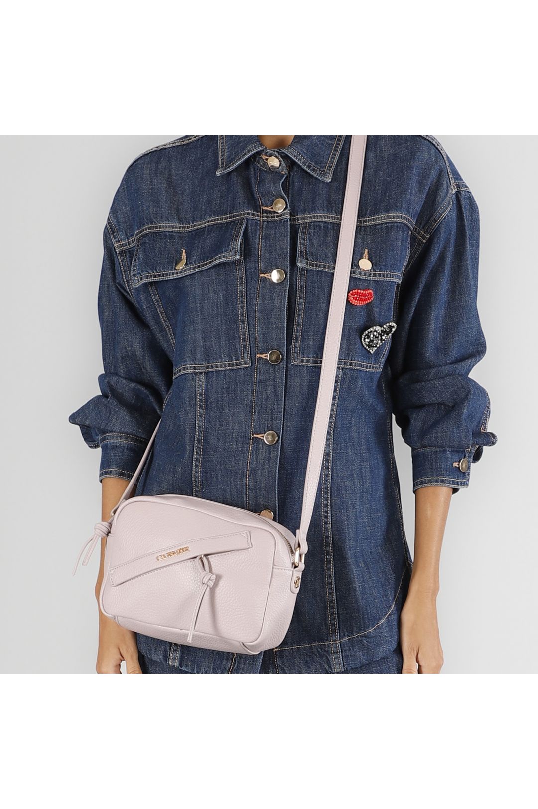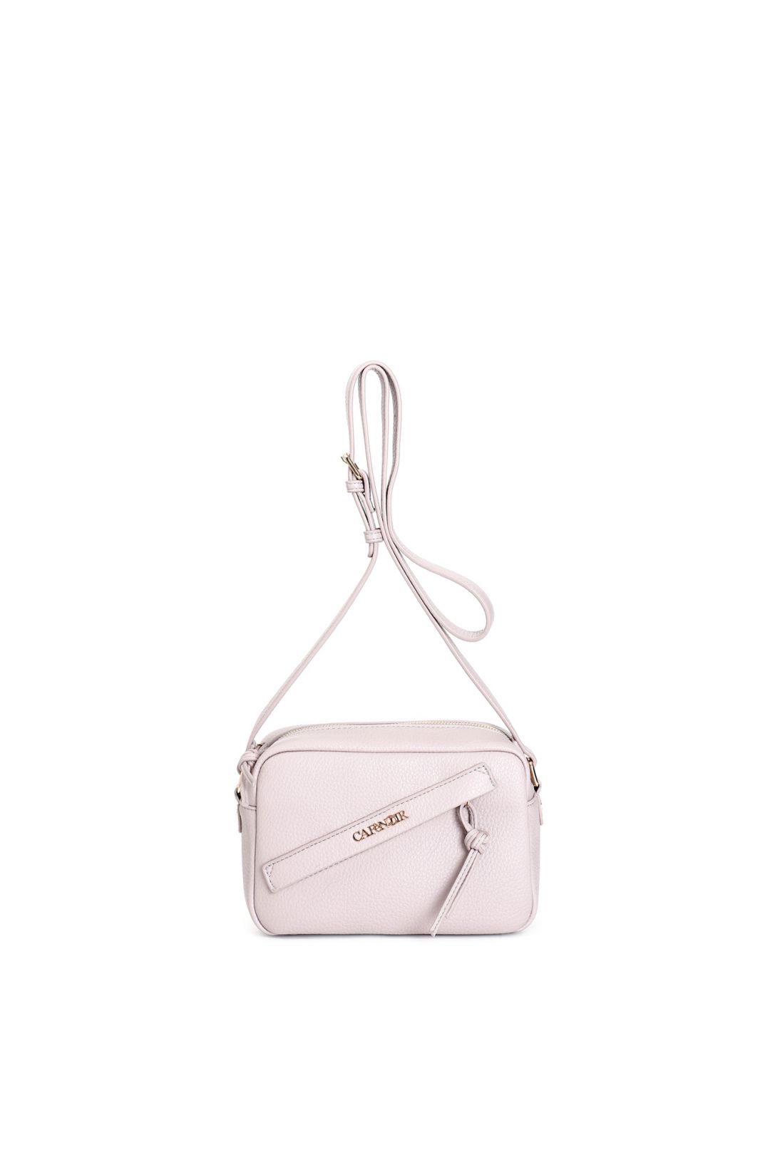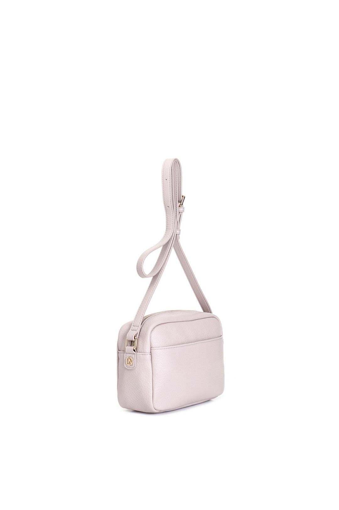Tracollina morbida in ecopelle a grana grossa con tasca con zip frontale tasca posteriore aperta e tiralampo con nodo. design versatile e funzionale per ogni occasione.